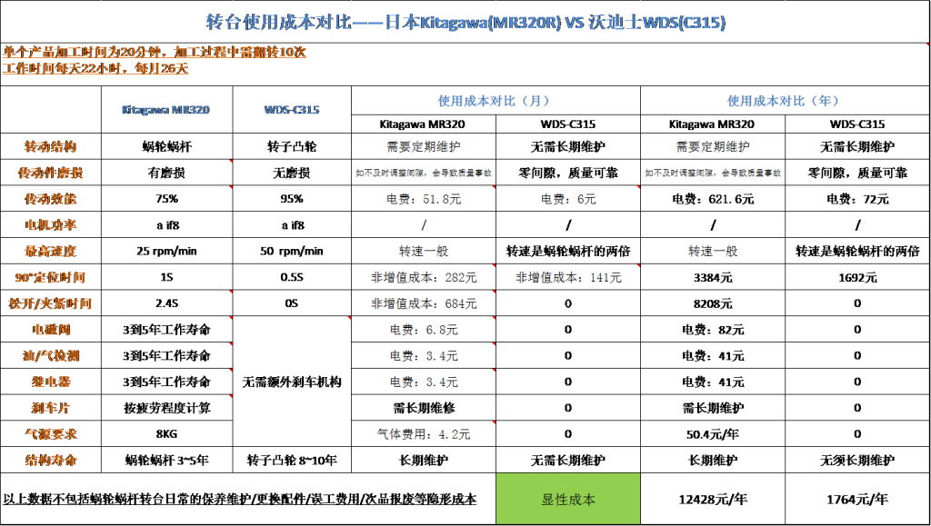 沃迪士-北川轉(zhuǎn)臺使用成本對比-汽車配件行業(yè)常用機型