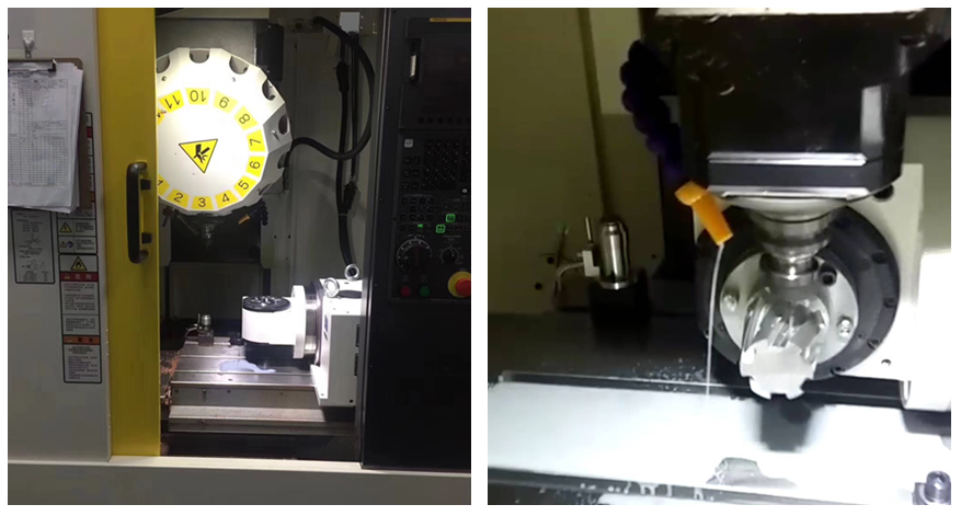 下圖是沃迪士WDS-T100型號(hào)單臂四軸在發(fā)那科機(jī)床上五軸聯(lián)動(dòng)加工航空部件的過(guò)程: