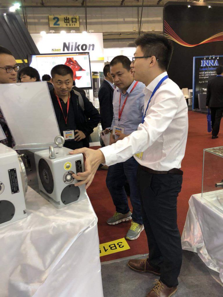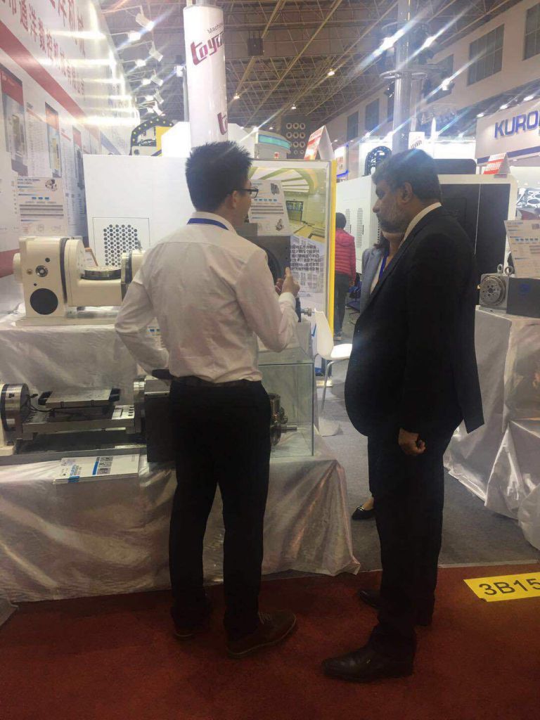 對(duì)于這場(chǎng)家門(mén)口的盛會(huì),沃迪士自然不會(huì)錯(cuò)過(guò)。凸輪滾子傳動(dòng)機(jī)構(gòu)的優(yōu)越性在這幾年間已經(jīng)漸漸被行業(yè)所認(rèn)識(shí)和認(rèn)可,沃迪士攜帶第四軸數(shù)控轉(zhuǎn)臺(tái)(盤(pán)面直徑120mm到400mm)以及單臂五軸、搖籃五軸產(chǎn)品在DMP現(xiàn)場(chǎng)吸引了很多的用戶和經(jīng)銷商前來(lái)討論詢價(jià),新開(kāi)發(fā)面世的主軸擺頭則讓來(lái)訪的數(shù)控機(jī)床商津津樂(lè)道,與我們的銷售經(jīng)理熱烈討論配套開(kāi)發(fā)新型高端機(jī)床的合作方案。