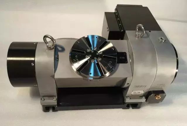 2.在國內很難買到10萬以下的雙轉臺,常用的在15萬到50萬甚至更高。雙轉臺(搖籃、懸臂):最難的是A擺(或者B擺),因為整個C軸轉臺固定在A(或B)軸上,A(B)擺電機在擺角時、即使是空載(不裝夾工件),要克服整個C軸組件的重量,其負載都很大,如果再加上夾具及工件,負載成倍增加,所以雙轉臺的精度和壽命出問題的一般都在A(B)擺,C擺相對少得多。這也是雙轉臺五軸機很少加工鋼件的本質原因【DMG直徑800的轉臺,A擺扭矩高達5000NM,也只能加工一噸左右的工件(含夾具)】,而這種大力矩電機的價格不是一般人承受的。但即便如此,五軸機中雙轉臺形式仍是最多的,因為這類五軸機相對制造難度較低(跟有擺角銑頭的機型比)。